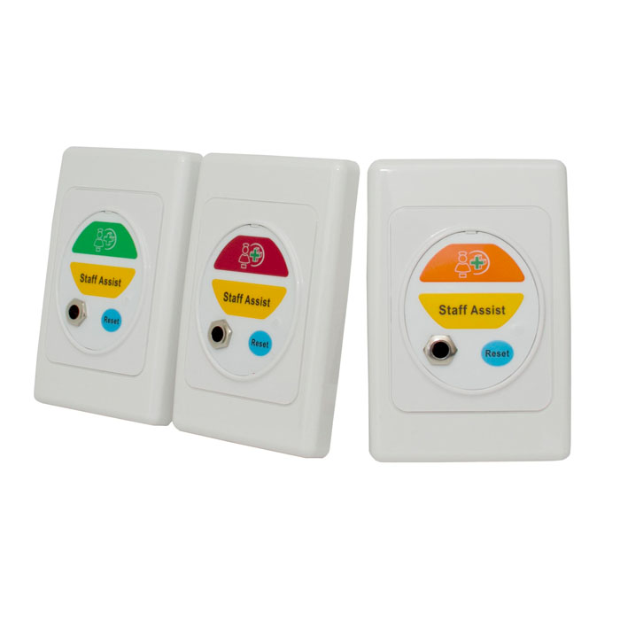 The CarePlus™ multifunction Call Point is a flush wall mount unit with large push buttons for various nurse call stations. There are several colours and labels for different priorities and alarms, and it comes complete with a reassurance light and tone for patient reassurance. The CarePlus™ Call Point has antimicrobial protection / infection control built into the device to reduce risk and spread of infection, bacteria, and superbugs such as MRSA.