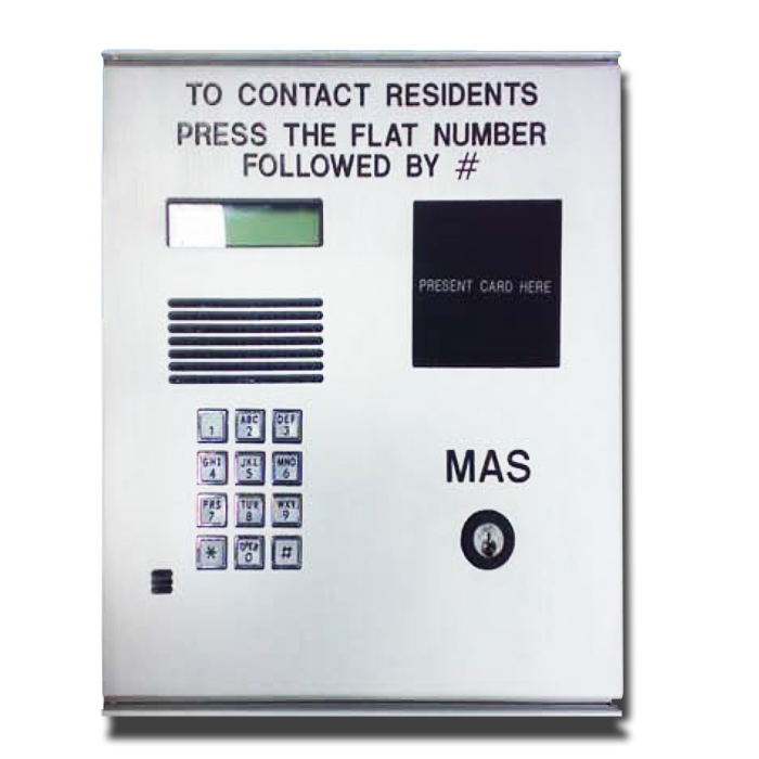 The anodised brushed aluminium panel is constructed from 3mm aluminium plate for optimum strength and reliability and includes all engraving and punch outs ready for the installation of the access control associated equipment. The Integrated Access Control Panel includes cut outs for Intercom, Card Reader and MAS key barrel. It is noted that mounting arrangements may vary depending on actual installation location.